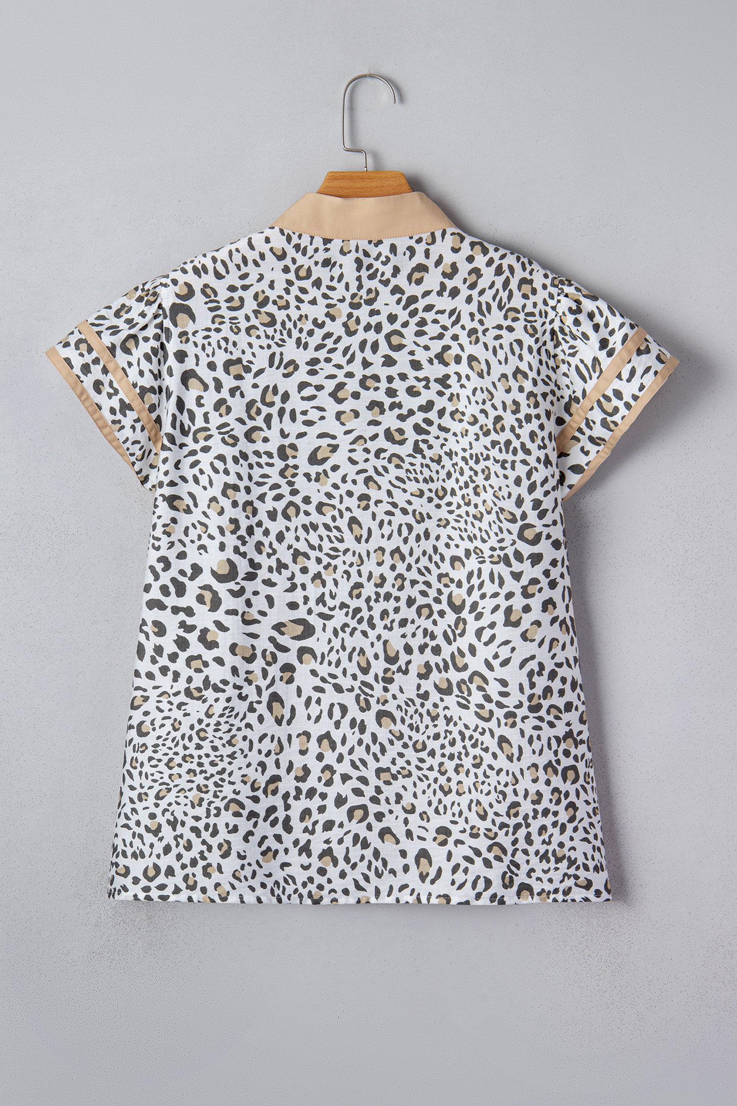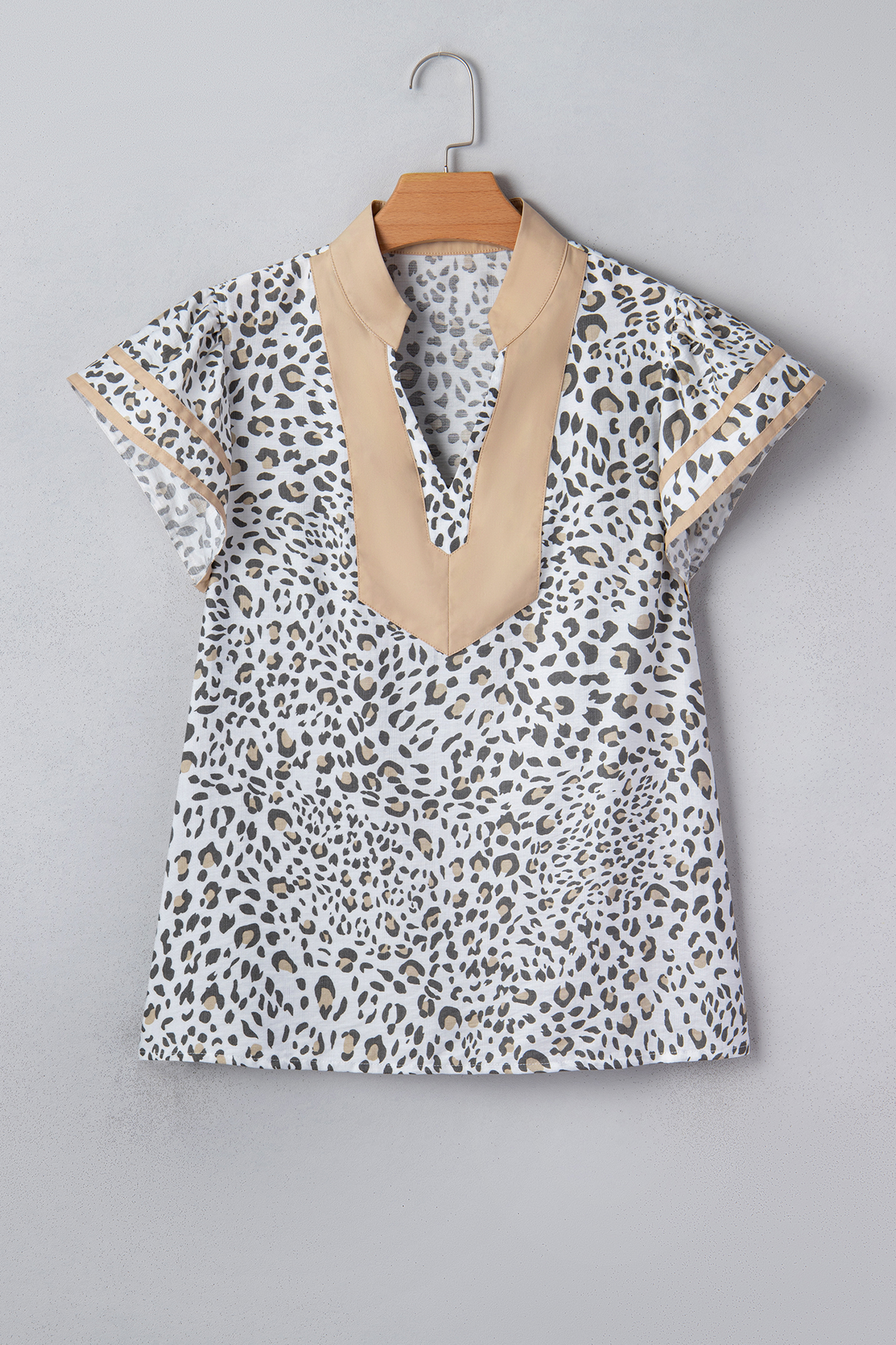 Be the first to review “White Leopard Printed Color Block Patchwork V Neck Cap Sleeve Blouse”