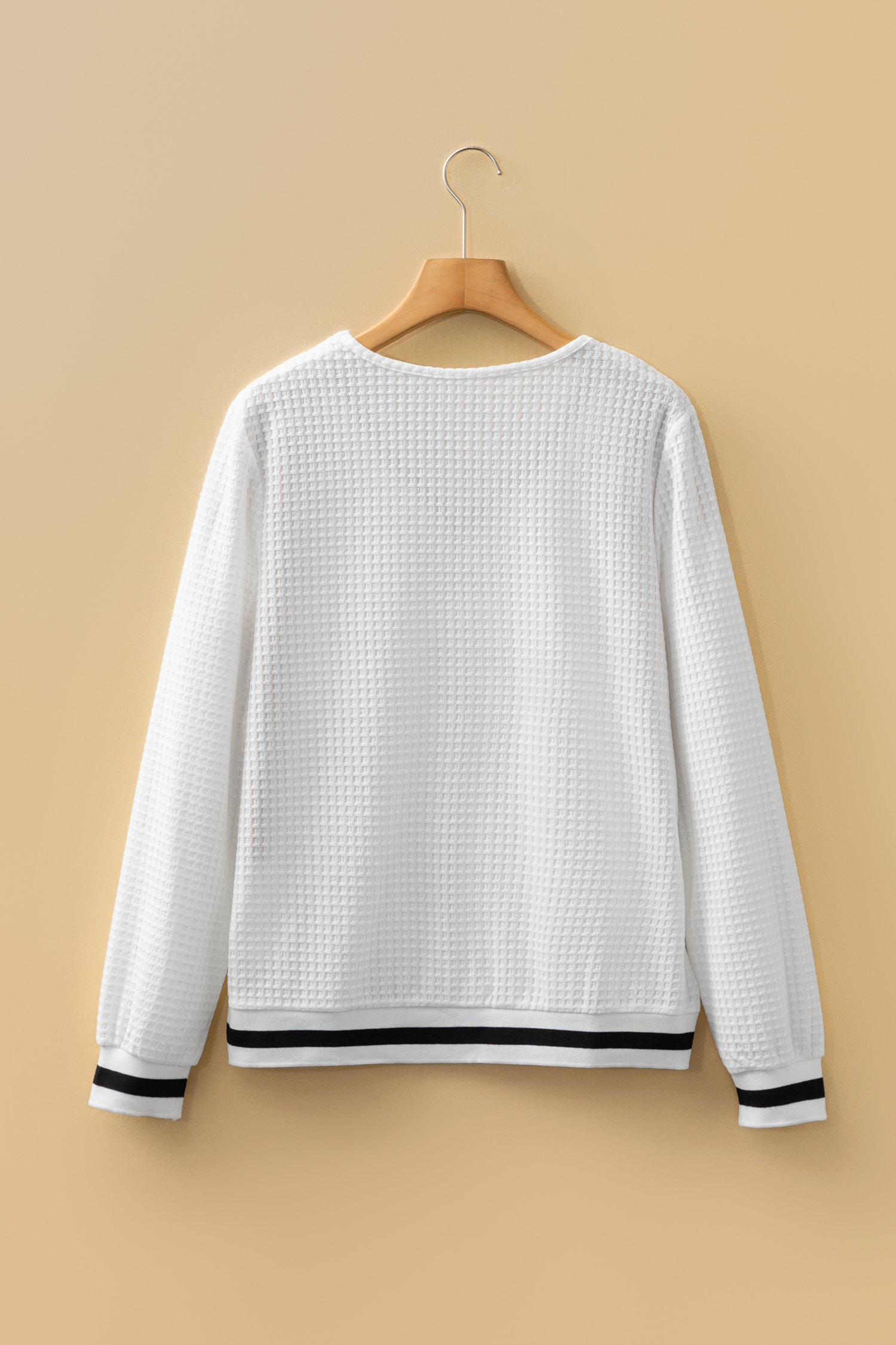 - Textured waffle knit offers visual appeal with breathable comfort.