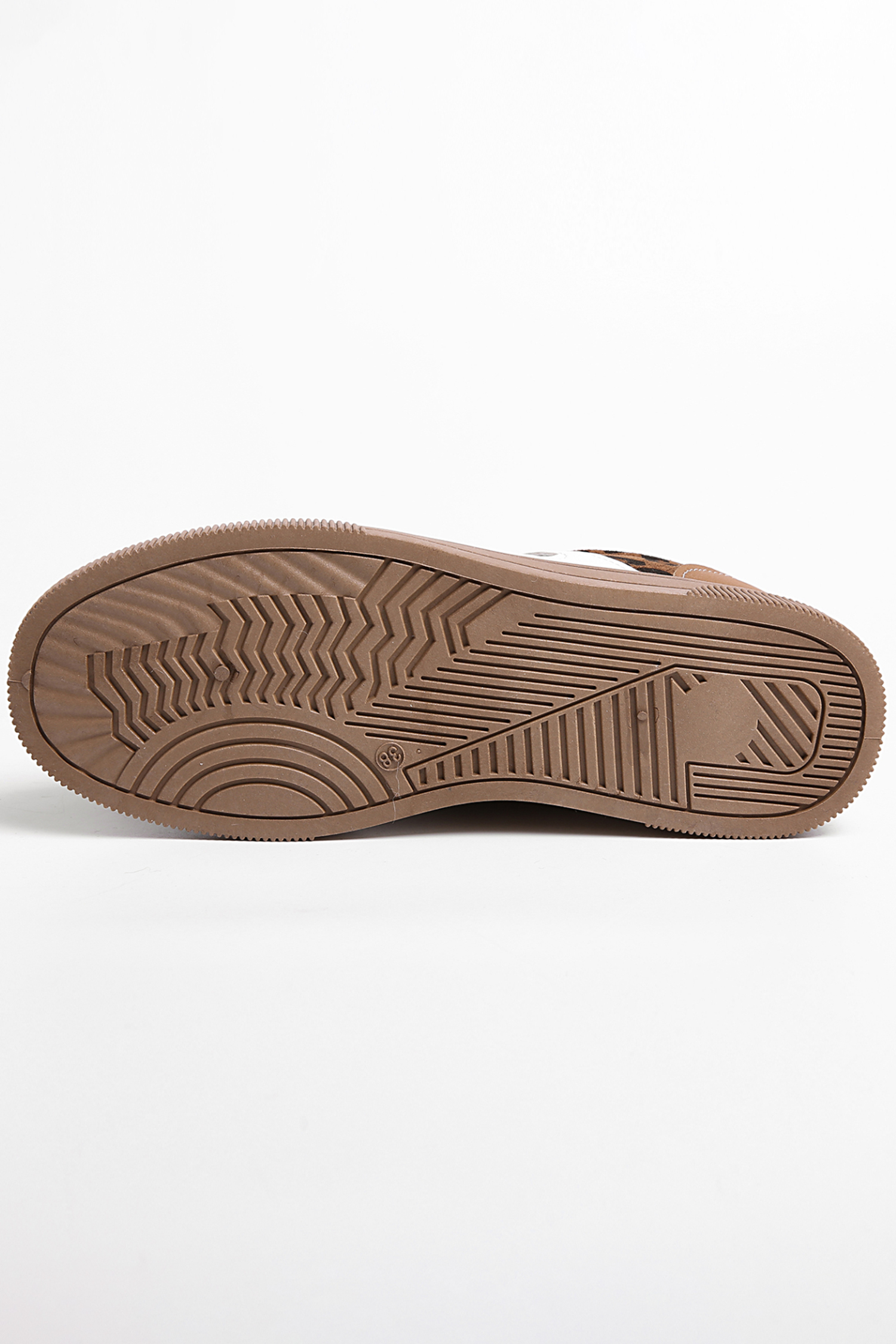 Patchwork design mixing woven texture, pu leather, and leopard details.